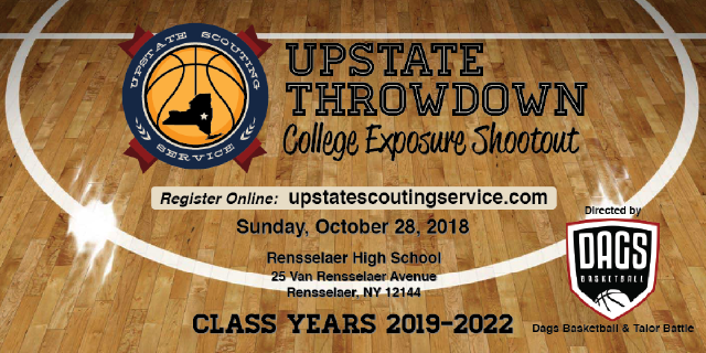 This October Upstate Scouting Service will again be hosting its College Exposure Shootout at Rensselaer High School. The event will be held on October 28th. This is not a traditional “exposure” event because it is not designed for simply charging admission, selling concessions, or marketing our brand. This is an evaluation period for our scouting service, as well as for the D2, D3, and JUCO coaches who attend. When a concentration of talent can compete in a controlled setting, it is as productive, if not more so, than most high school or AAU games. This Shootout is for student athletes who are serious about continuing to play basketball after their high school graduation. We will have players from almost every NYSPHSAA section, including much of New York State’s top talent. Please feel free to come out and test your skills in front of coaches who may recruit you for their programs. Validate your hard work and aspirations- see if you have what it takes to elevate your game to the next level.